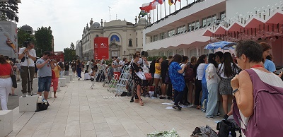 E poi ci sono le persone come te, quelle che sono a caccia di un autografo o di un selfie con il proprio beniamino, e che aspettano ore sotto il sole o sotto la pioggia per avere il posto in prima fila o affacciate alla terrazza davanti all’Hotel Excelsior per vedere chi arriva con i motoscafi.