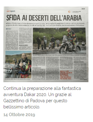Parlo della nuova sfida che a distanza di 3 anni dalla precedente Matteo Olivetto ha deciso di accettare: la sua seconda Dakar, ancora a sfidare la sabbia, le rocce, le dune, il caldo, le incognite di una gara durissima, impegnativa, piena di sorprese ma ricca di emozioni e di esperienze uniche che ti riempiono la vita.