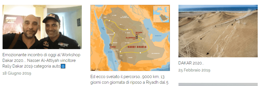dal 5 al 17 Gennaio 2020 nelle sabbie dell’Arabia Saudita, si parte da Jeddah e si va verso nord costeggiando il mar Rosso per poi addentrarsi nel deserto fino a Riyadh e arrivare dopo ALTRI 6 giorni al traguardo a Qiddiya. Trovi qui il percorso