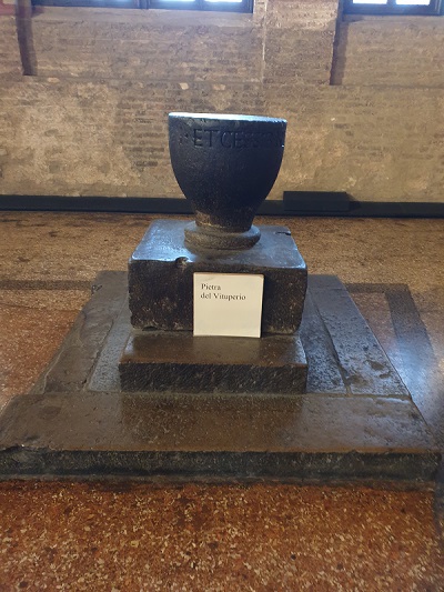 Sul lato destro dell’ingresso c’è la Pietra del Vituperio da cui nasce il detto padovano