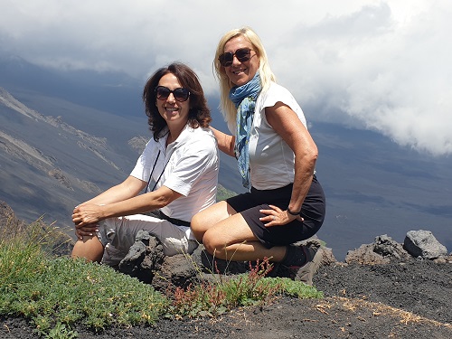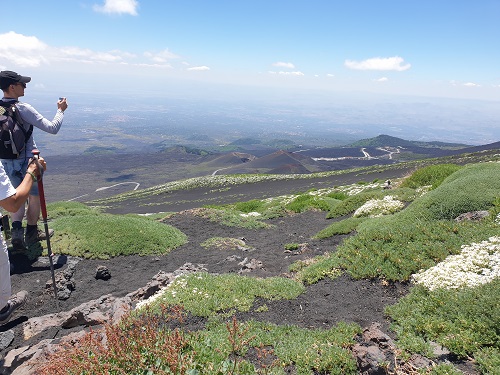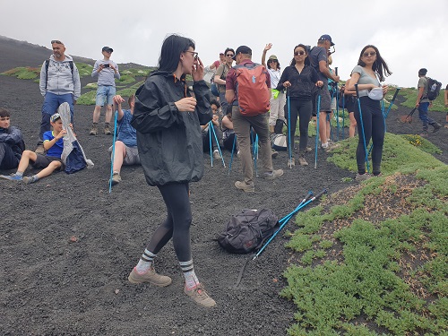 Da non esperta mi sono rivolta a dei professionisti: Ernesto, Alessandro e Sergio di Etna Guided Tours, partendo dal centro di Catania ci hanno condotto in pulmino fino a quota 1900 mt, ci hanno fornito l’attrezzatura necessaria per una salita in sicurezza: scarpe, bastoncini, giacca a vento, e raccontandoci la storia del vulcano e delle sue eruzioni ci hanno portato in passeggiata a quota 2400 mt.