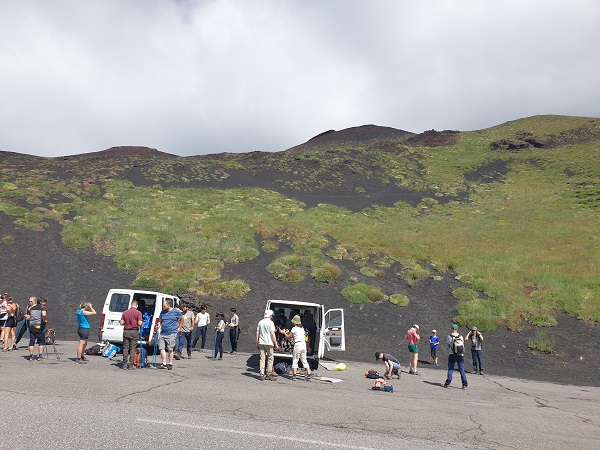 Cibo: almeno un litro d’acqua, un panino – nell’impeccabile organizzazione di questi ragazzi veramente speciali c’è la sosta prima di arrivare a quota 1900 per acquistare un panino con la caponata o la parmigiana da gustare in compagnia una volta in cima all’Etna.