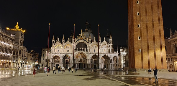 La Basilica Cattedrale Patriarcale di San Marco Evangelista, più comunemente chiamata Basilica di San Marco, è la cattedrale della città di Venezia e sede del patriarcato. Unitamente al campanile e all’omonima piazza, forma il principale luogo architettonico della città lagunare e costituisce il più conosciuto simbolo della città e del Veneto nel mondo.