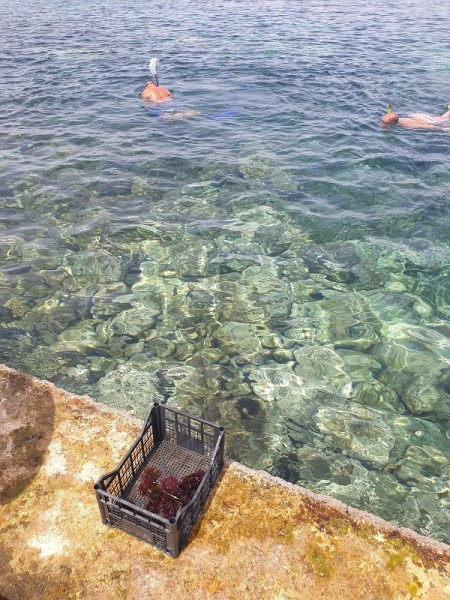 A Cala Tramontana abbiamo condiviso l’esperienza della raccolta dei ricci di mare, si pescano staccandoli dalla roccia, si aprono con le forbici e si toglie il frutto arancione, a petalo. Buonissimi da mangiare così, ottimi per preparare il sugo della pasta!